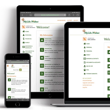 The Legacy Vault provides a secure, encrypted space to store and organize your most important documents, passwords, and final wishes in one convenient location. With 24/7 access, secure sharing with trusted contacts, built-in reminders, and bank-level AES 256 encryption, your information remains protected, private, and readily available whenever it is needed.